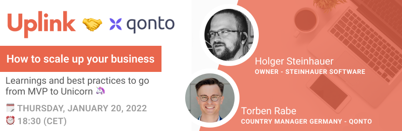 We are looking forward to the webinar with Torben Rabe from our partner Qonto and Holger Steinhauer from the Uplink community.
